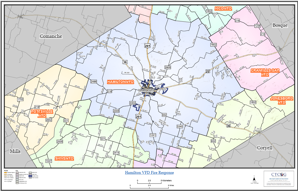The Hamilton Volunteer Fire Department services nearly half of the Hamilton County independently and provides mutual aid to the 8 surrounding volunteer fire departments as well.